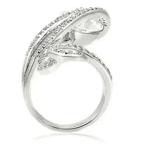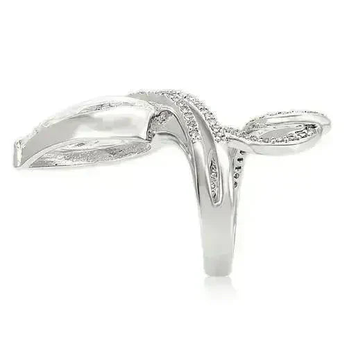 0W253 Rhodium Brass Ring – 23x11mm AAA Clear CZ Statement Piece