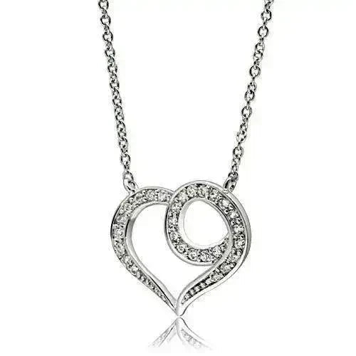 3W075 - Rhodium Brass Necklace with AAA Grade CZ in Clear