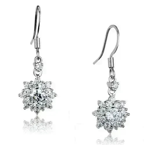 3W1054 Rhodium Brass Earrings – AAA Clear CZ Studs