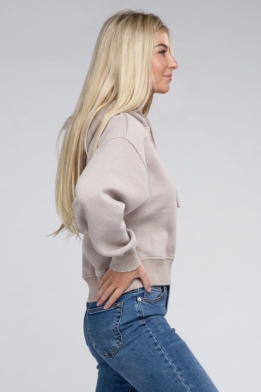 Stay cozy and stylish with our Acid Wash Fleece Hoodie. This hoodie is the perfect blend of comfort and fashion, featuring a unique acid wash design that adds a trendy edge to your casual wear. Made from soft and warm fleece fabric, it's perfect for staying snug on cooler days. The hoodie comes with a drawstring for an adjustable fit and a front kangaroo pocket for added convenience.