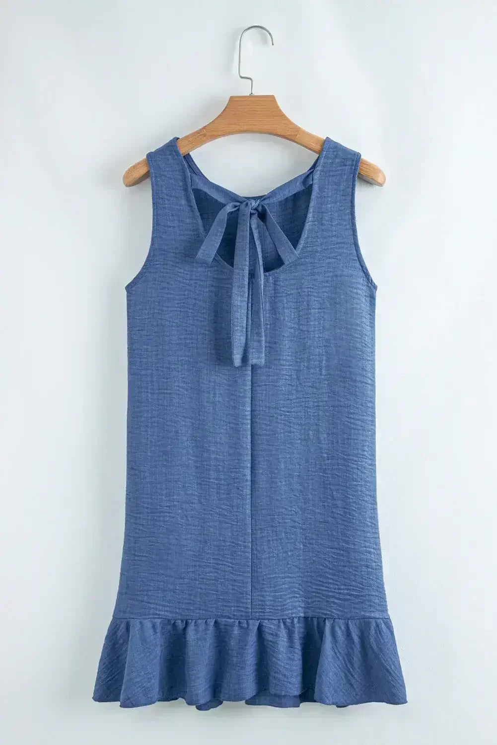 Ashleigh Blue Sleeveless Knot Backless Ruffle Hem Mini Dress