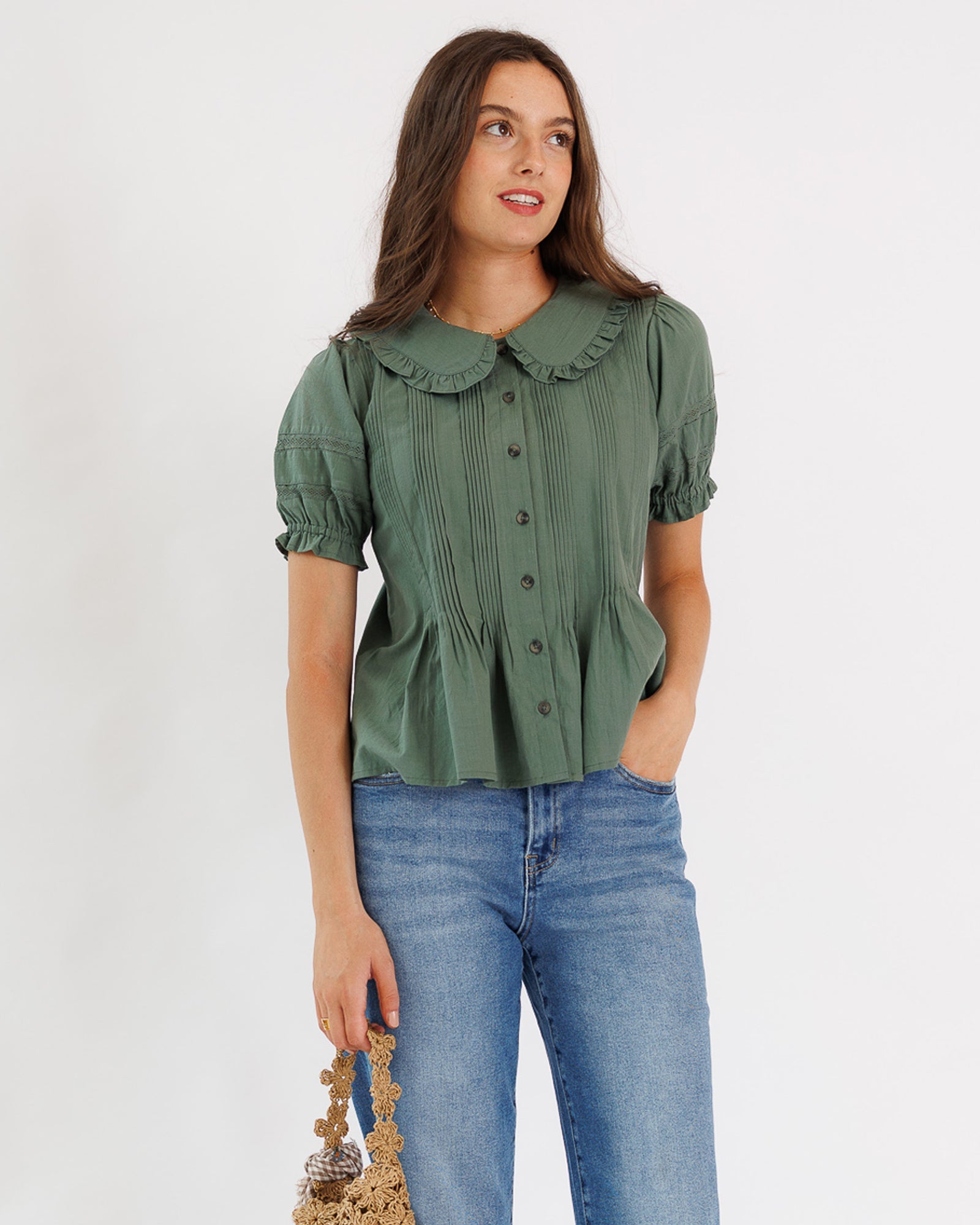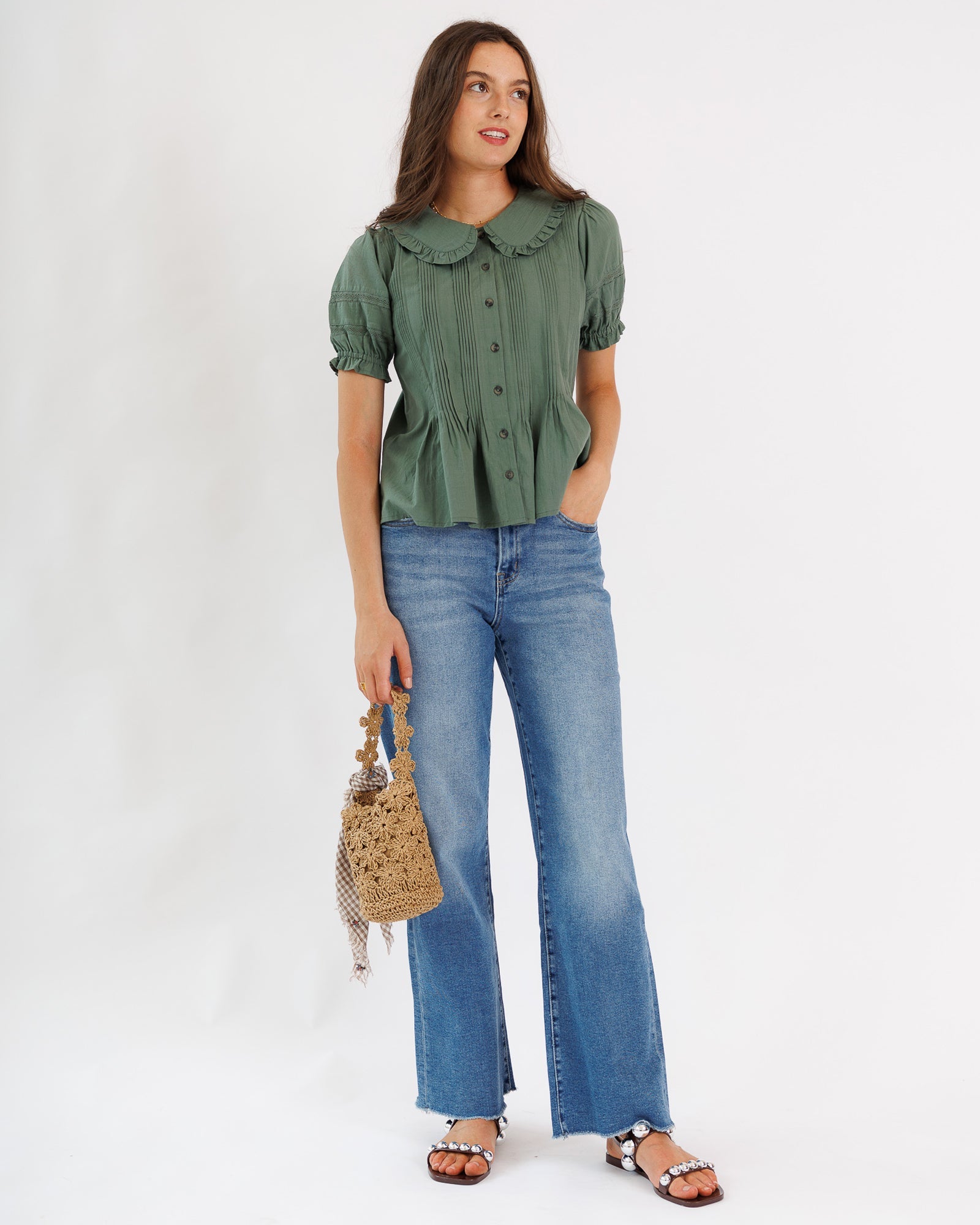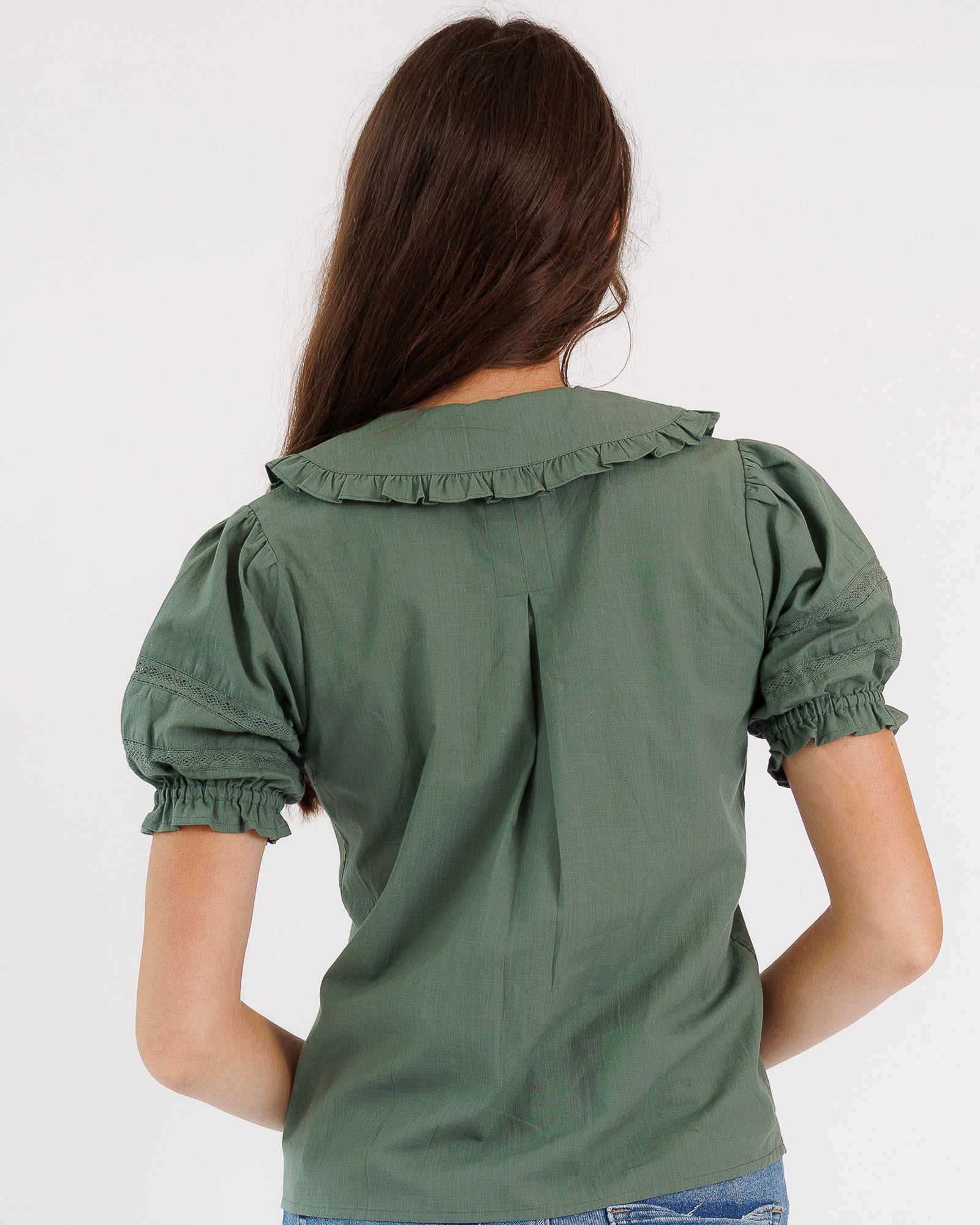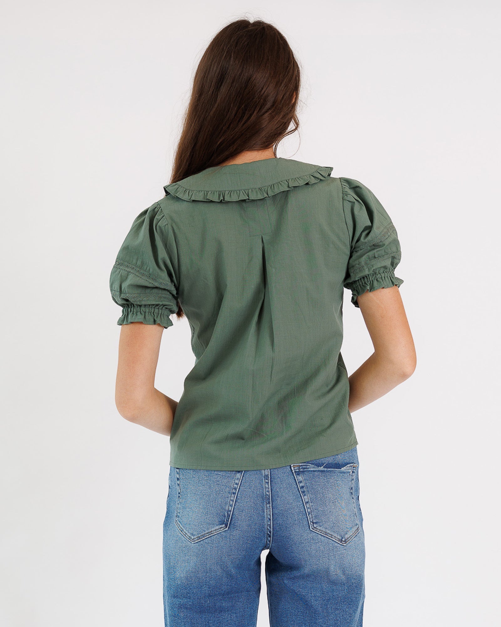 - Peter Pan collared neckline