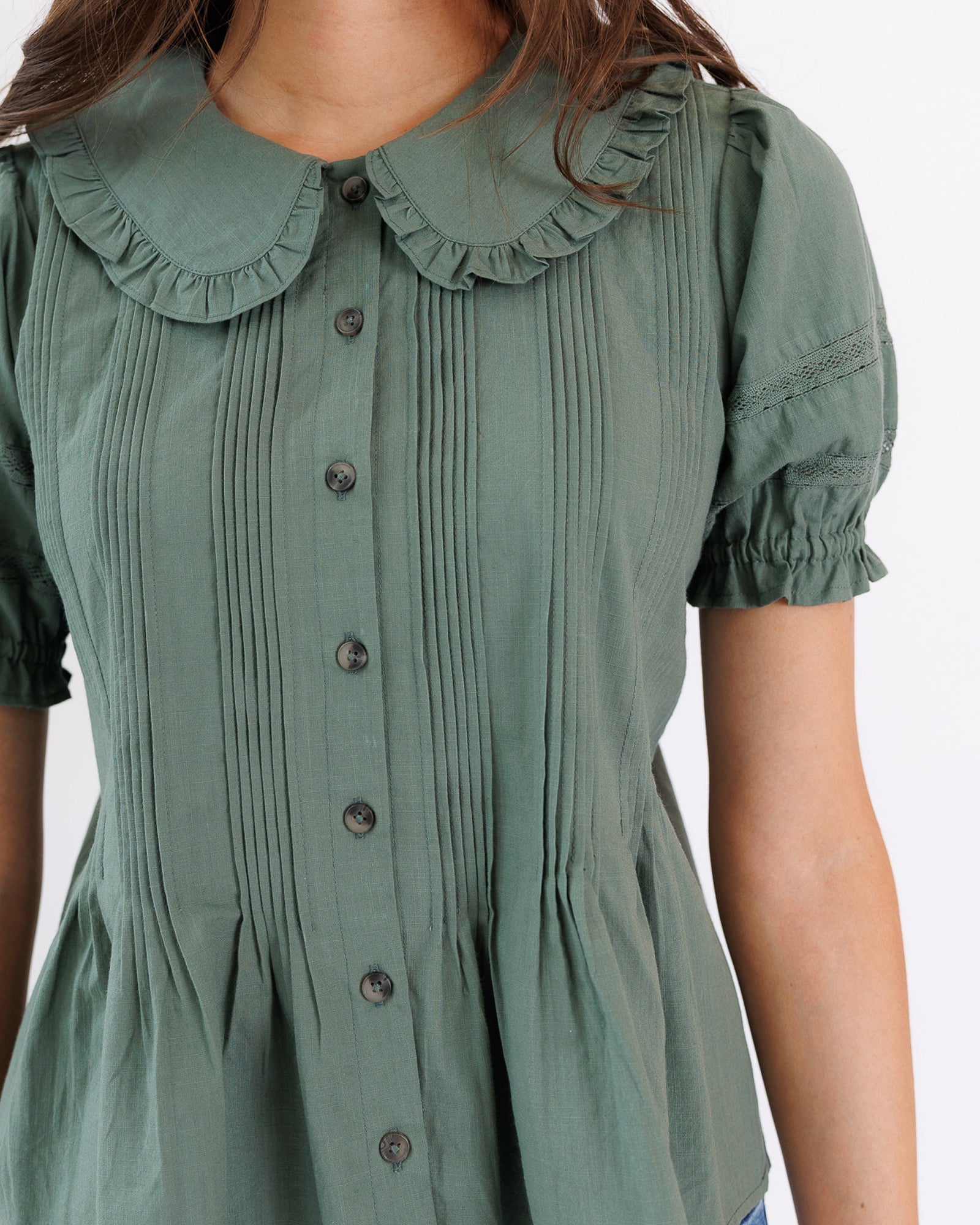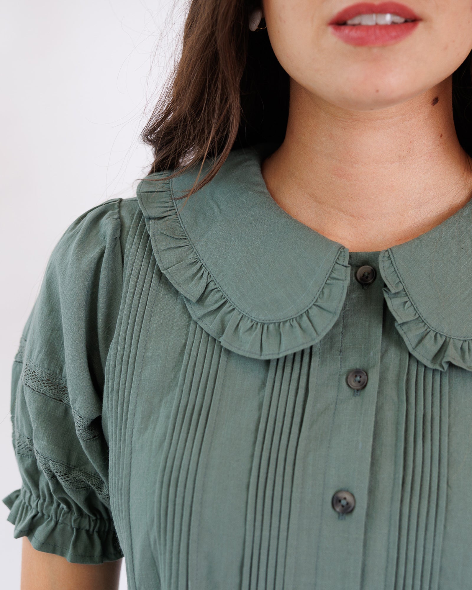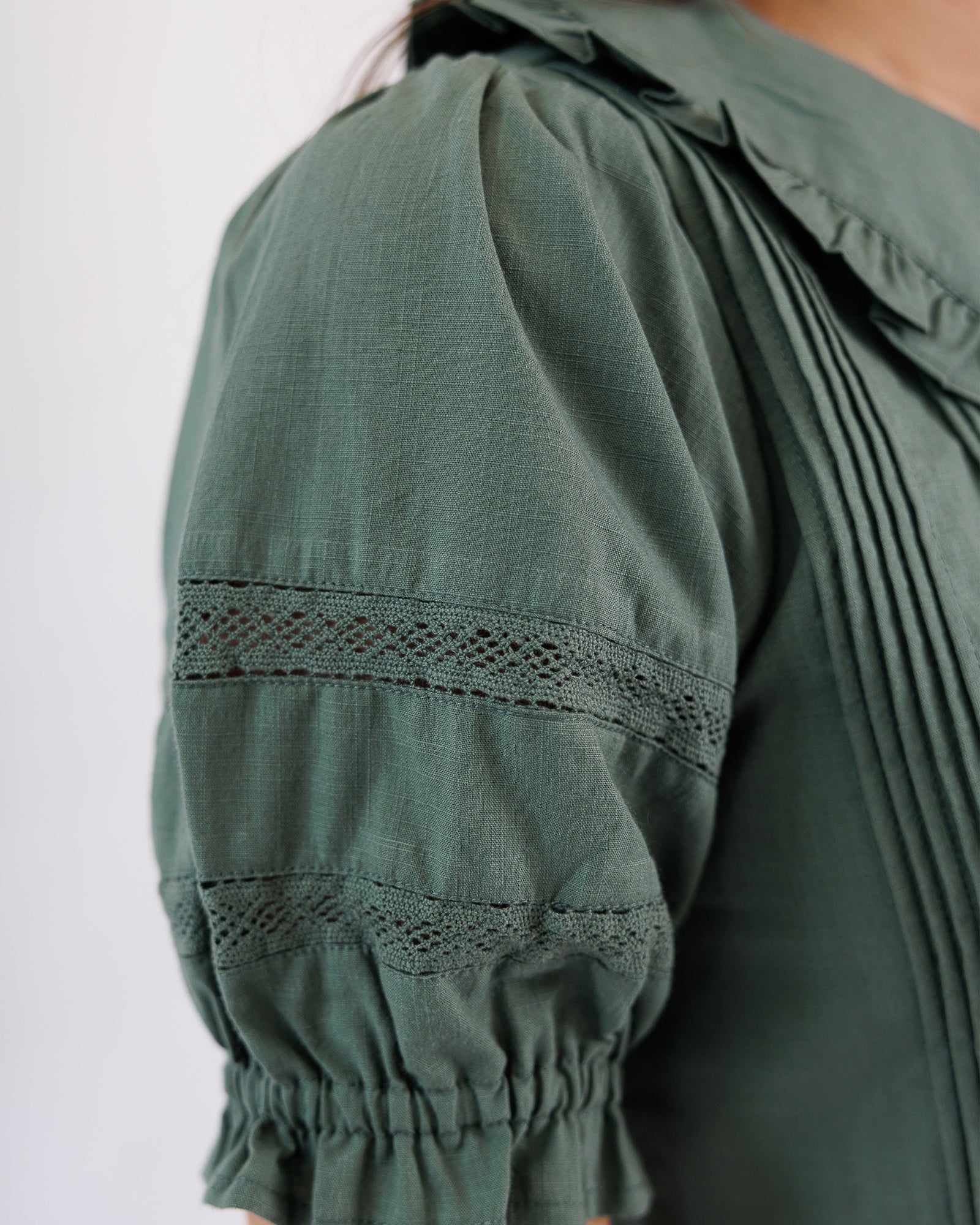- Pintucks on front bodice