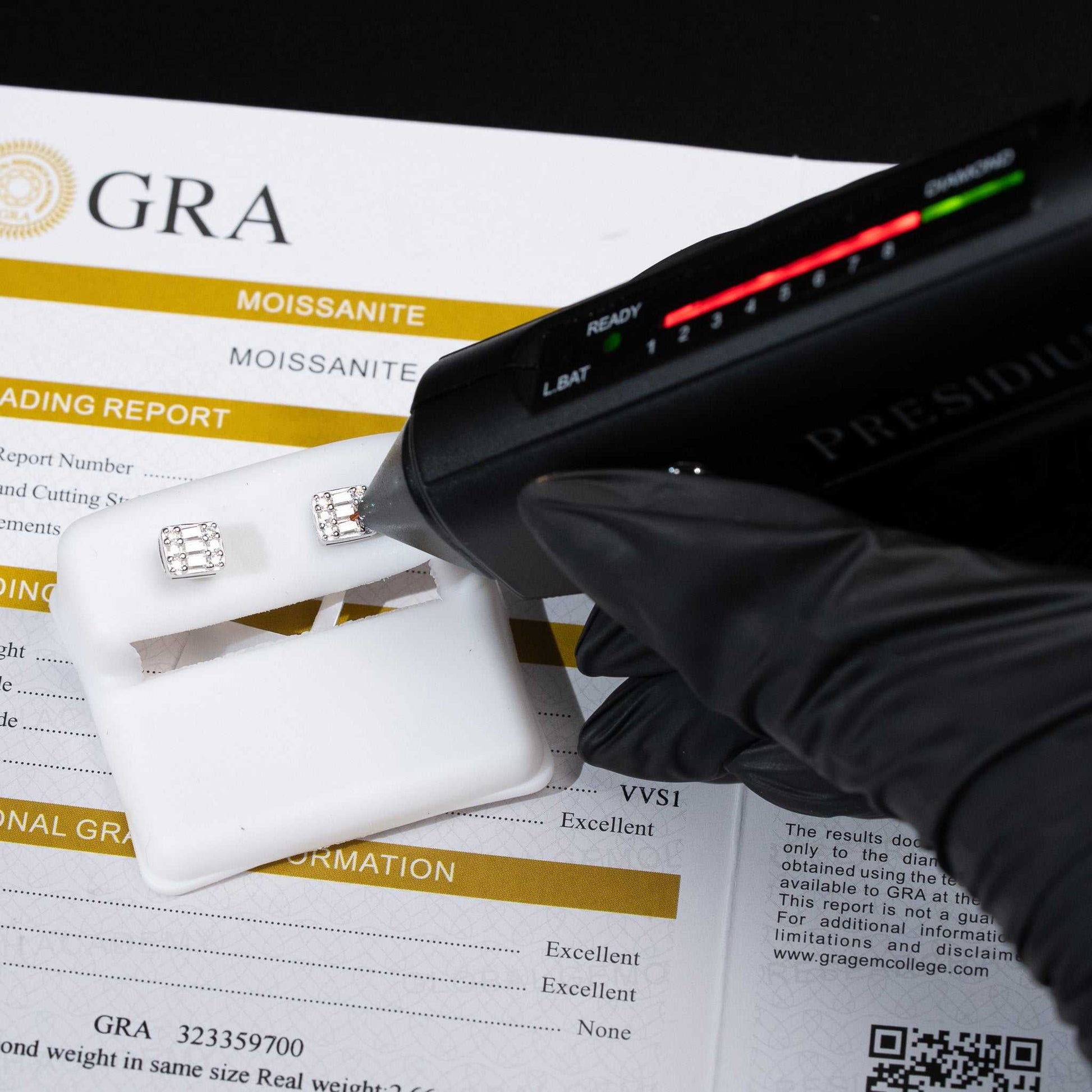 These Moissanite Baguette Square Stud Earrings offer a sleek, geometric look with clean lines and radiant sparkle. Crafted in 925 sterling silver, they're a refined everyday option for men, women, or unisex wear.
